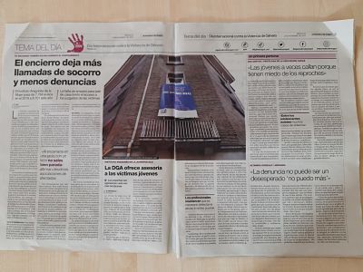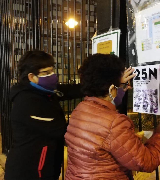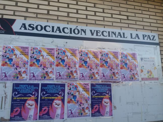 A pesar de todas las limitaciones que impone la pandemia la Comisión de la Mujer de la FABZ y las Comisiones de las Asociaciones Vecinales, junto a los colectivos feministas de la ciudad, han desplegado una intensa actividad para celebrar el Día Internacional para la Eliminación de la Violencia Machista: videos, charlas, cartelería y comunicados difundidos por las redes sociales, pegadas de carteles en los barrios, Picarral, La Jota, Las Fuentes, La Paz, Parque Goya…, y la concentración en la plaza España convocada por la Asamblea 8 M Zaragoza