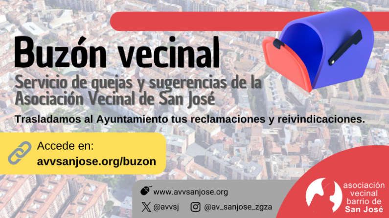 La Asociación Vecinal de San José ha puesto en marcha un Buzón Vecinal para que los vecinos y vecinas del barrio puedan hacerles llegar sus quejas y sugerencias a través de la web.