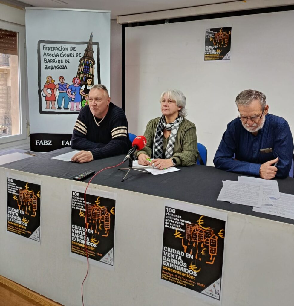 Las asociaciones vecinales de los barrios San José, Torreo y La Paz, además de la FABZ (Federación de Asociaciones de Barrios de Zaragoza), rechazan la adjudicación de los suelos de la antigua Alumalsa (Área U36/8), de propiedad municipal desde 1986, por 9,35 millones a la inmobiliaria Brial.