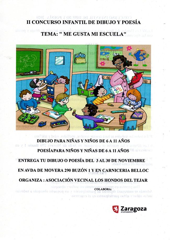 Asimismo está prevista este mes de diciembre la entrega de trofeos y diplomas del II Concurso infantil de Dibujo y Poesía, para niñ@s residentes o escolarizados en Movera que ha convocado la Asociación Vecinal Hondos del Tejar de este barrio rural zaragozano. Se realizará en la sede de esta asociación vecinal siguiendo el protocolo covid establecido, en varios días para facilitar la recogida de forma individual.