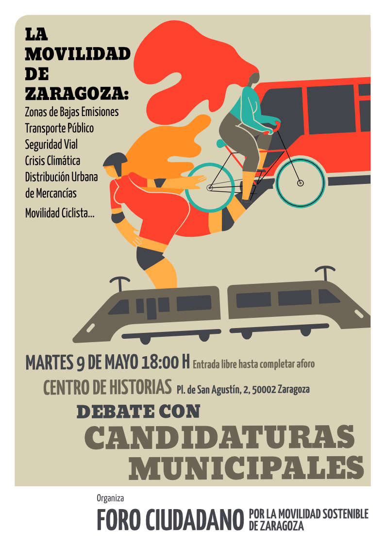 El Foro Ciudadano por la Movilidad Sostenible organiza un debate entre las principales candidaturas que se presentan a las elecciones municipales en Zaragoza, para que expongan sus proyectos para avanzar en políticas de movilidad limpia, justa y eficiente en los próximos cuatro años.
