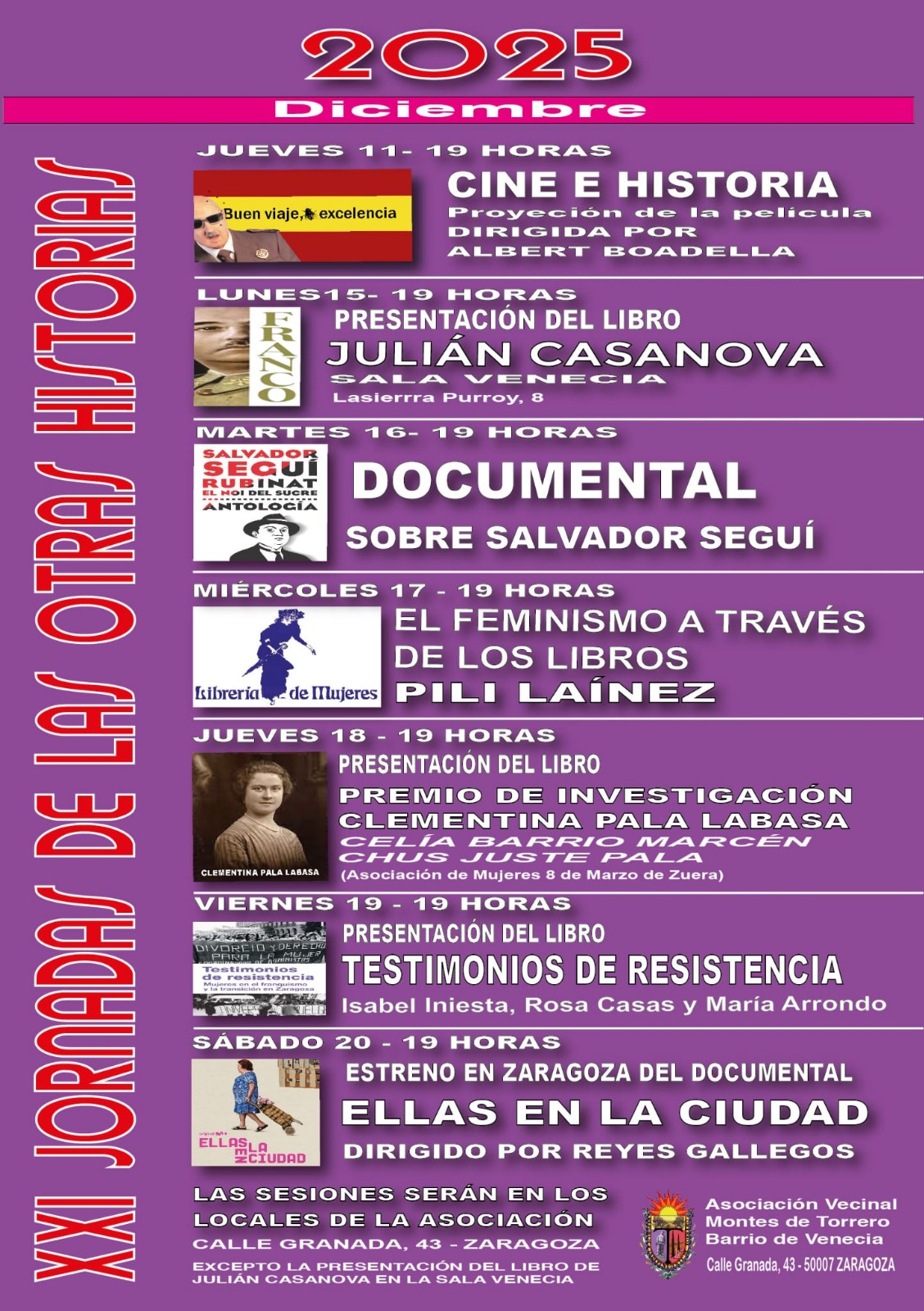 Y otro año más al llegar diciembre presentamos con ilusión las XXI JORNADAS DE LAS OTRAS HISTORIAS, y contaremos una vez más con JULIÁN CASANOVA que nos presentará su libro FRANCO.