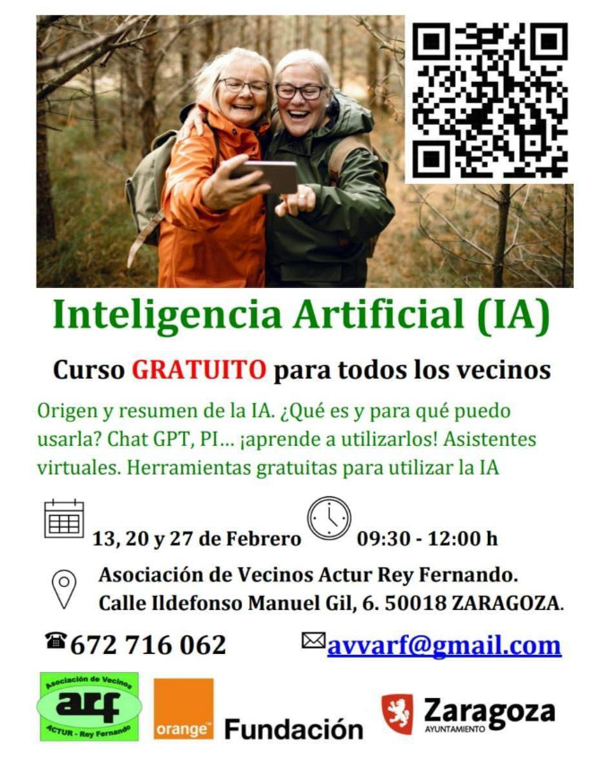AV Actur Rey fernando C. de Ildefonso Manuel Gil, 6,, Zaragoza, Zaragoza13,20,27/02/2026 – De 09:30 a 12:00h. Curso GRATUITO para todos los vecinos en la AV Actur Rey Fernando. Origen y resumen de la IA. ¿Qué es y para qué puedo […]