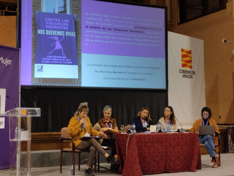 La Comisión de la Mujer de la FABZ participó en las mesa redonda para tratar los “Retos para un futuro feminista”, junto a Fademur (Federación de Asociaciones de Mujeres Rurales), la Coordinadora de Organizaciones Feministas de Zaragoza de la que formamos parte, Amanixer (Asociación Aragonesa de Mujeres con Discapacidad), Fundación Secretariado Gitano, Somos Más (Asociación de Mujeres Sobrevivientes de la Violencia Machista), SOMOS LGTB+, CENTRO ALBA Y ACISJF.