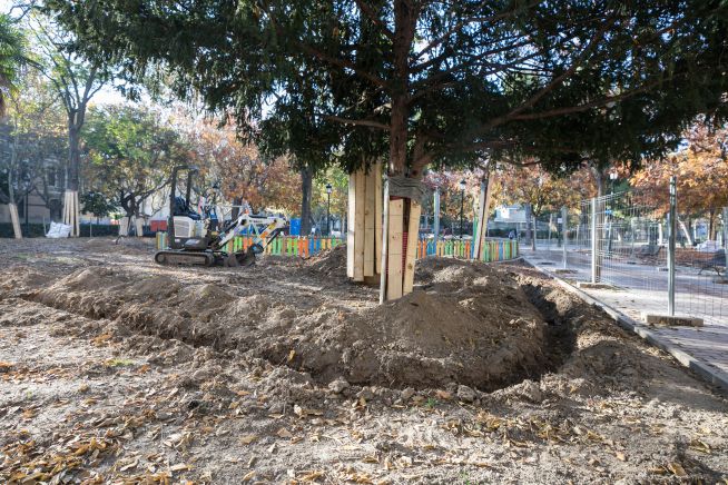 La segunda intervención se centra en la Plaza de Los Sitios. En este caso la intervención se focaliza en la renovación del césped de los parterres, deteriorado por las deposiciones de perros, sustituyendo cesped y tierra, cambiando el sistema de drenaje… que se añadirán a las mejoras ya ejecutadas en materia de movilidad, estacionamientos de bicis, patinetes y motocicletas, a la licitación de un nuevo quiosco…
