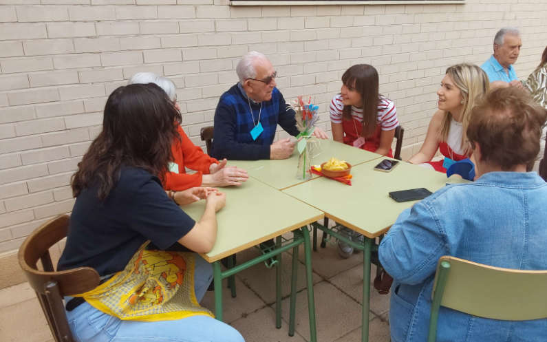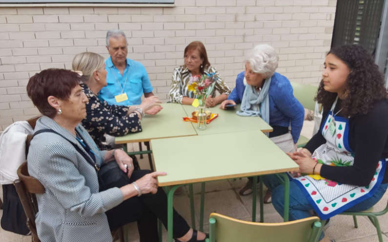 La experiencia por ambas partes, mayores y jóvenes, fue acogida con gran entusiasmo disfrutando de una tarde muy entrañable, en la que compartiendo una merienda a la fresca hablaron y hablaron… y tuvieron tiempo también para escuchar poesías, oír jotas, jugar al bingo y terminar con un baile colectivo.