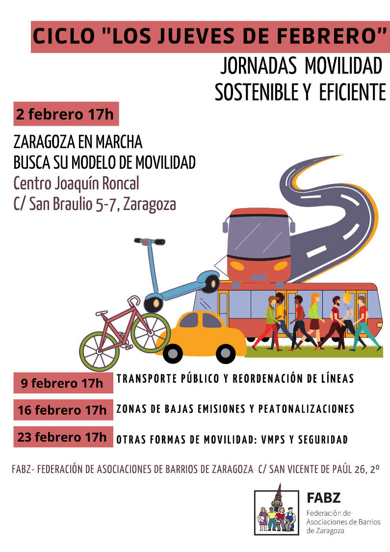 Comienza el ciclo «Los Jueves de Febrero» con la jornada “Zaragoza en Marcha Busca su Modelo de Movilidad” el 2 de febrero, en el Centro Joaquín Roncal, a las 17:00H
